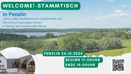 Herzlich willkommen zum „Welcome Stammtisch“ in Penzlin! Am Freitag, den 24. Oktober 2025, laden wir Sie von 17:00 bis 19:00 Uhr ins Voß Haus in Penzlin ein, um in gemütlicher Runde ins Gespräch zu kommen. Mit dabei ist Frau Kaselitz, Mitglied des Landtages und Wahlkreisabgeordnete für die Mecklenburgische Seenplatte. Als Expertin in den Bereichen Migrations-,